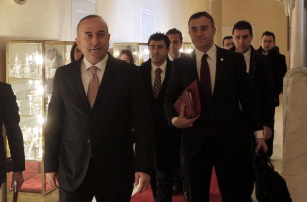 ΤΣΑΒΟΥΣΟΓΛΟΥ: Αξιότιμε Αντιπρόεδρε της Ελληνικής Κυβερνήσεως και Υπουργέ Εξωτερικών, Αξιότιμε φίλε μου, κ. Βενιζέλο, Αξιότιμοι Εκπρόσωποι Τύπου. Είμαι χαρούμενος σήμερα που φιλοξενώ την Αντιπρόεδρο της Κυβέρνησης και Υπουργό Εξωτερικών της Ελλάδος, τον φίλο μου τον κ. Βενιζέλο και την αντιπροσωπεία του εδώ στην χώρα μας. Είχα την ευκαιρία να συναντηθώ μαζί του στα πλαίσια της Συνόδου του ΝΑΤΟ στην Ουαλία και στα Ηνωμένα Έθνη. Και πάντοτε οι συνομιλίες μας ήταν στα πλαίσια μιας φιλικής ατμόσφαιρας. Η σημερινή επίσκεψη συμπίπτει σε περίοδο που η ατζέντα της εξωτερικής πολιτικής είναι φορτισμένη με δοκιμασίες. Επίσης είχαμε την ευκαιρία να αξιολογήσουμε και τις εξελίξεις στο Ιράκ. Σε αυτήν την φορτισμένη περίοδο, η απόφαση της διοργάνωσης του 3ου Ανώτατου Συμβουλίου Συνεργασίας Ελλάδας – Τουρκίας, στην Αθήνα στις 5-6 Δεκεμβρίου του 2014, είναι απόδειξη της θέλησης της βελτίωσης των σχέσεων και των δύο χωρών.