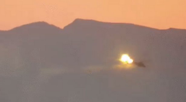 Το κλιπ φαίρεται να δείχνει το ελικόπτερο κατα την διάρκεια επίθεσης ενάντια των τζιχαντιστών κοντά στην Παλμύρα.