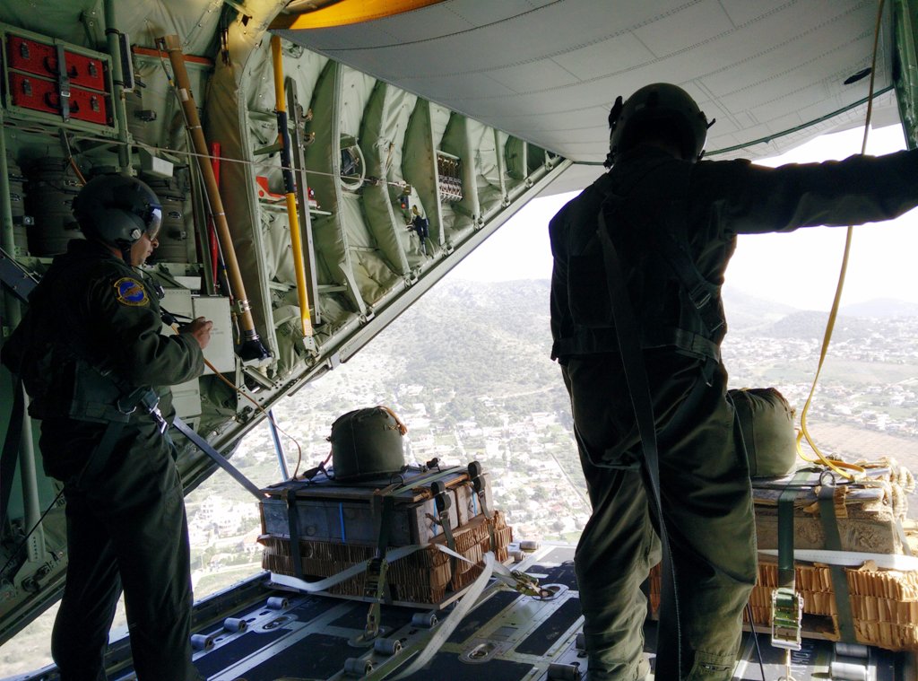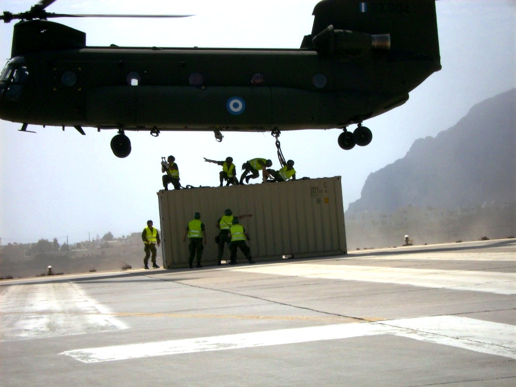 - Με ανεφοδιασμό από αέρα με εφόδια και υλικά, με τη χρήση Ελικοπτέρων της Αεροπορίας Στρατού και Αεροσκαφών της Πολεμικής Αεροπορίας.