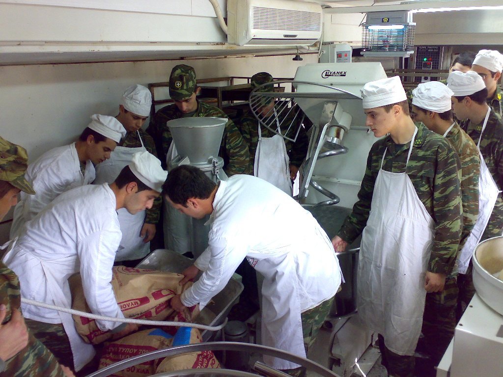 - Με παρασκευή άρτου και διπυρίτη, που παρασκευάζονται σε στρατιωτικά αρτοποιεία.