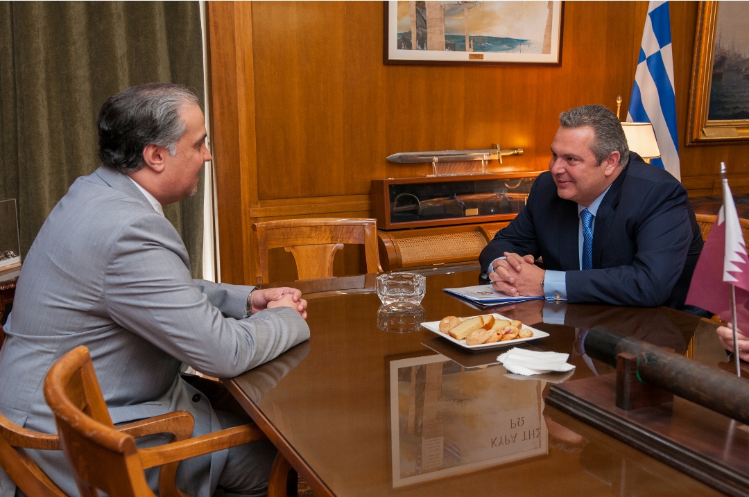 Ο Υπουργός Εθνικής Άμυνας Πάνος Καμμένος συναντήθηκε με το νέο Πρέσβη του Κατάρ Abdulaziz Ali Al-Naama και συζήτησαν θέματα που αφορούν τη διμερή αμυντική συνεργασία καθώς και την περαιτέρω ανάπτυξή της.
