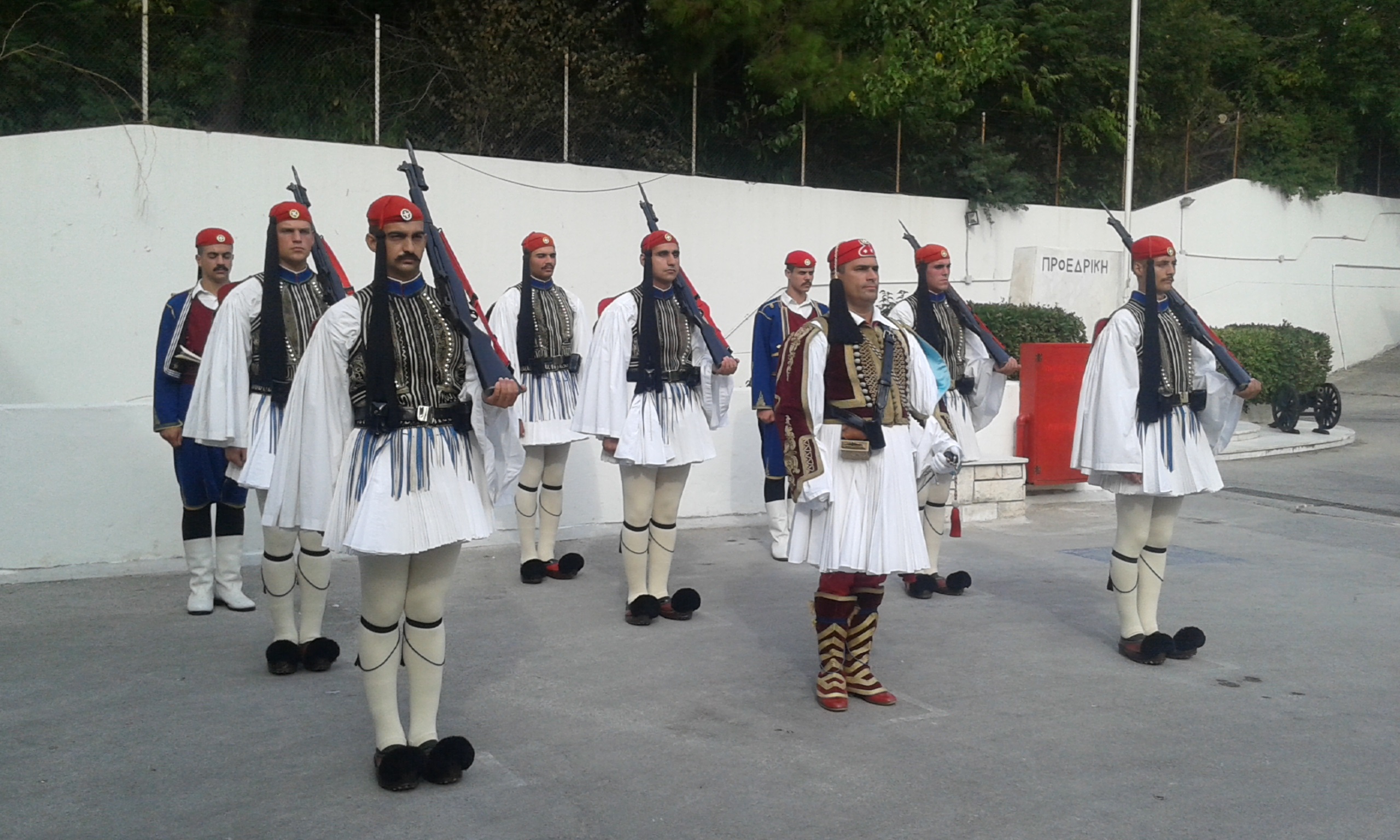 Κόσμος σταματά και με δέος παρακολουθεί τους Εύζωνες να παρελαύνουν σε επιβλητικό σχηματισμό. Η Πλατεία Συντάγματος είναι γεμάτη από τουρίστες που παίρνουν θέση για να παρακολουθήσουν την Επίσημη Αλλαγή.