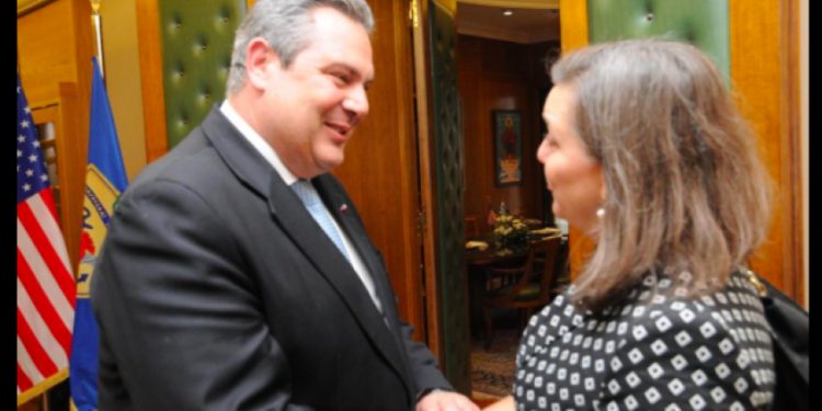 Ούτε με τον υπουργό Άστον Κάρτερ ,ούτε με τον υφυπουργό Άμυνας των ΗΠΑ Ρόμπερτ Γουόρκ θα έχει συνάντηση στις ΗΠΑ ο Πάνος Καμμένος. Ο ΥΕΘΑ δεν θα πάει στο Πεντάγωνο ,αλλά το Στέητ Ντιπάρτμεντ, όπου θα συναντηθεί με την αμερικανίδα υφυπουργό Εξωτερικών για θέματα Ευρώπης Βικτόρια Νούλαντ,την οποία πρόσφατα είχε δει στην Αθήνα. Σύμφωνα με πληροφορίες από το περιβάλλον του Πάνου Καμμένου ο ίδιος αρνήθηκε να έχει συνάντηση με τον αμερικανό υφυπουργό Άμυνας.