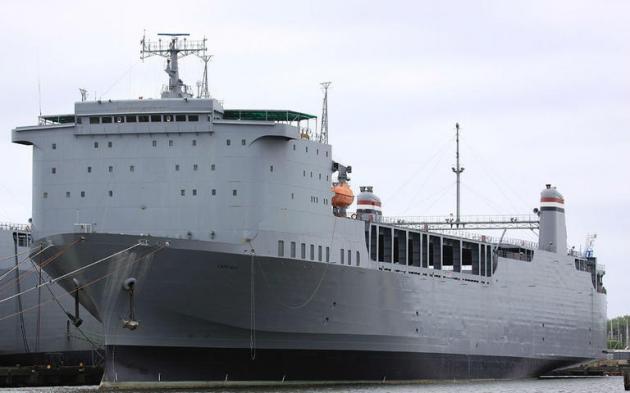 Πρόκειται για το πλοίο MV Cape Ray το οποίο ανήκει στην Διεύθυνση Ναυτιλίας της αμερικανικής κυβέρνησης. Το πλοίο κατασκευάστηκε το 1977 και παραδώθηκε στην Σαουδική Αραβία, μεταπωλήθηκε στις ΗΠΑ το 1993 όπου και εγιναν οι κατάλληλες μετρατοπές για την χρήση του ως πολεμικό πλοιο. Εχει μήκος 197,5 μέτρα, πλάτος 32 μέτρα, εκτόπισμα 35.350 τόνους.