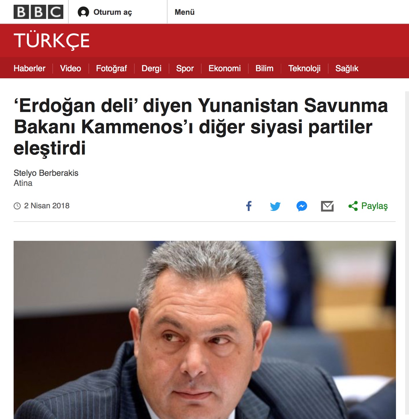 O τρελός Ερντογάν κατά τον Έλληνα ΥΕΘΑ προκάλεσε την κριτική των κομμάτων στην Ελλάδα αναφέρει το ΒΒC Turkce, το οποίο επίσης δεν παραλείπει να προσδιορίσει με τον όρο ακροδεξιό κόμμα, τους Ανεξάρτητους Έλληνες. Υποστηρίζει μάλιστα ότι για αυτή την έκφραση δέχτηκε κριτική και από τον βουλευτή του κόμματός του κ. Δημήτρη Καμμένο, ο οποίος κατά το τουρκικό BBC την χαρακτήρισε υπερβολική.
