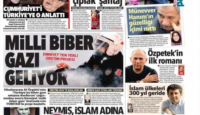 Η Τουρκία ετοιμάζεται να παράγει το δικό της «εθνικό δακρυγόνο»!. Σύμφωνα με το πρωτοσέλιδο θέμα της Ηürriyet η Διεύθυνση Ασφάλειας της Τουρκίας πήρε την έγκριση του Ερευνητικού Ινστιτούτου της Τουρκίας το οποίο τόνισε πως στην Τουρκία υπάρχουν οι υποδομές για την παραγωγή δακρυγόνων. Έτσι η Διεύθυνση Ασφάλειας τις επόμενες ημέρες θα ξεκινήσει συνομιλίες με τις εταιρείες για την παραγωγή του συγκεκιρμένου προϊόντος εντός της χώρας.
