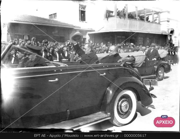 (Η ξενάγηση του Τούρκου Προέδρου από το Βασιλικό ζεύγος στον κήπο των Νέων Ανακτόρων, Πηγή: ΕΟΑ)