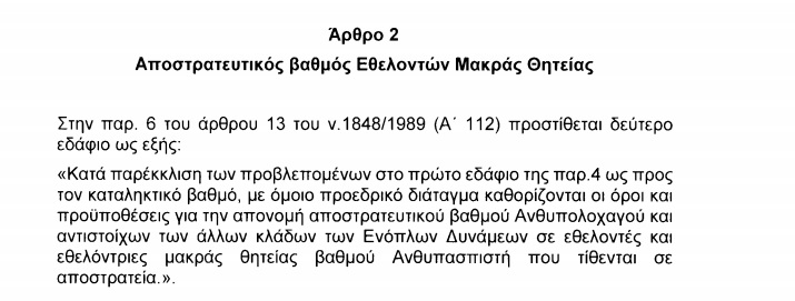 Κατατέθηκε στην Βουλή το Σ.Ν του ΥΠΕΘΑ «Ρυθμίσεις περί σταδιοδρομίας και εξέλιξης στελεχών και οικονομικής μέριμνας και λογιστικού των Ενόπλων Δυνάμεων, σύσταση Κοινού Σώματος Οικονομικών Επιθεωρητών και άλλες διατάξεις» το οποίο προβλέπει για τους Εθελοντές Μακράς Θητείας τα παρακάτω: