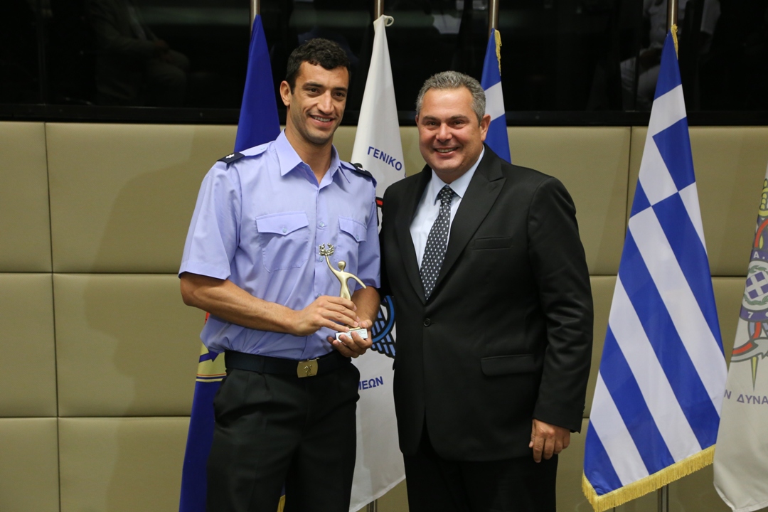 Ο Υπουργός Εθνικής Άμυνας Πάνος Καμμένος, ο Αναπληρωτής Υπουργός Εθνικής Άμυνας Δημήτρης Βίτσας, ο Αρχηγός ΓΕΕΘΑ Ναύαρχος Ευάγγελος Αποστολάκης ΠΝ, ο Αρχηγός ΓΕΣ Αντιστράτηγος Βασίλειος Τελλίδης παρέστησαν στη βράβευση του προσωπικού των Ενόπλων Δυνάμεων και των Σωμάτων Ασφαλείας που έλαβε μέρος στους Ολυμπιακούς Αγώνες 2016.