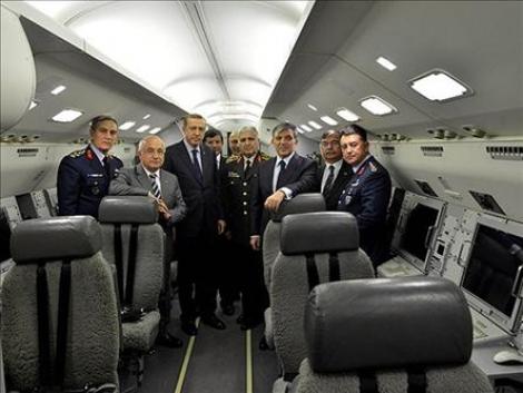 Στο πρώτο από τα τέσσερα <<ιπτάμενα ραντάρ>> της Τουρκίας μπήκε η πολιτειακή,πολιτική και στρατιωτική ηγεσία της χώρας κατά την τελετή εντάξεως στο δυναμικό της Πολεμικής Αεροπορίας .
