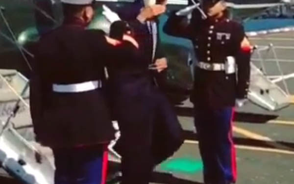 Ο στρατιωτικός χαιρετισμός αποτελεί παράδοση για τους προέδρους όταν συναντούν τους πεζοναύτες που στέκονται στο τελευταίο σκαλοπάτι της σκάλας του ελικοπτέρου.