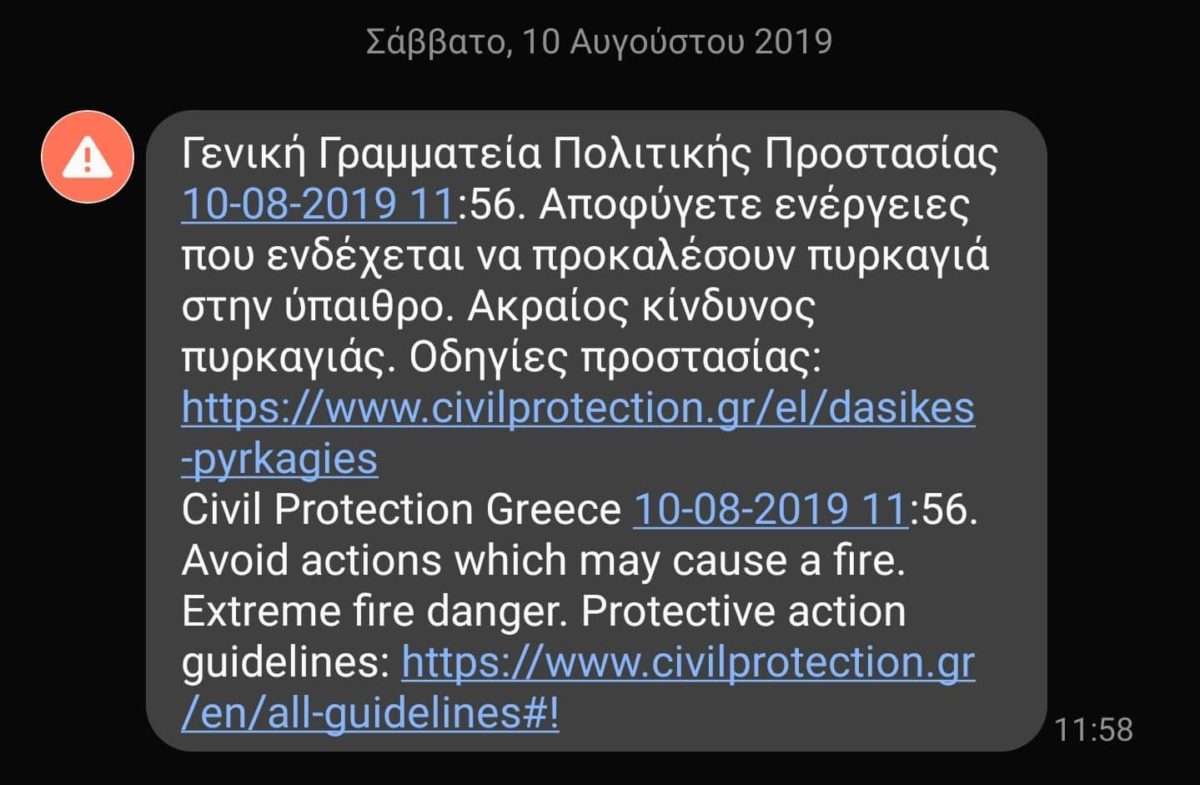 Όπως έγινε γνωστό από την Πολιτική Προστασία, λειτουργούν πλέον τα δύο κέντρα του 112, καθώς ολοκληρώθηκε η εκπαίδευση όσων τα στελεχώνουν και πλέον θα μπορούν να στέλνονται μηνύματα στα κινητά όλων των πολιτών, σε ολόκληρη τη χώρα, 24 ώρες το 24ωρο για επτά μέρες την εβδομάδα.