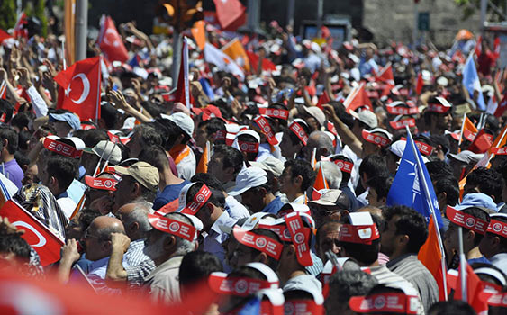 Περίπου 12.000 τούρκοι συγκεντρώθηκαν σε κεντρική πλατεία της πόλης και κρατώντας σημαίες της Τουρκίας και του AKP φώναζαν συνθήματα υπέρ του τούρκου πρωθυπουργού.
