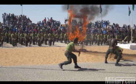 Κάπου στην Δυτική Σαχάρα. Ένα τμήμα που έχει καθήκοντα στις αντιτρομοκρατικές επιχείρησεις όπως λέει η περιγραφή του βίντεο κάνει μία επίδειξη των δυνατοτήτων του. Θα παρατηρήσετε μια …επιμονή στο πέρασμα μέσα απο πύρινο δαχτυλίδι. Εντυπωσιακότατος βέβαια είναι ο εκφωνητής ο οποίος δεν καταλαβαίνουμε τι λέει αλλά είναι απίστευτο πως καταφέρνει να μιλά σε ρυθμό…πολυβόλου χωρίς να παίρνει ανάσα!
