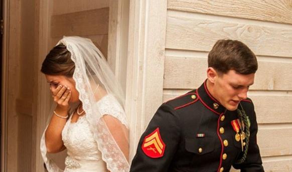 Αυτη η φωτογραφία κάνει τον γύρο του διαδικτύου. Ένας πεζοναύτης και η νεαρή του σύζυγος, χέρι, χέρι λίγο πριν παντρευτουν.