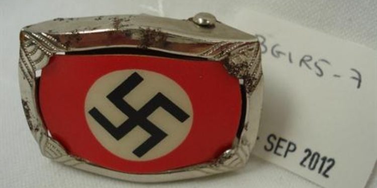Περιβραχιόνια με τη σβάστικα που φορούσαν νεολαίοι του Χίτλερ,εμβλήματα των ναζί, σερβίτσια και μαχαιροπίρουνα από το στρατόπεδο συγκέντρωσης του Μπούχενβαλντ και μανσέτες που ανήκουν στο Totenkopf, ένα τμήμα των SS βγαίνουν σε δημοπρασία.