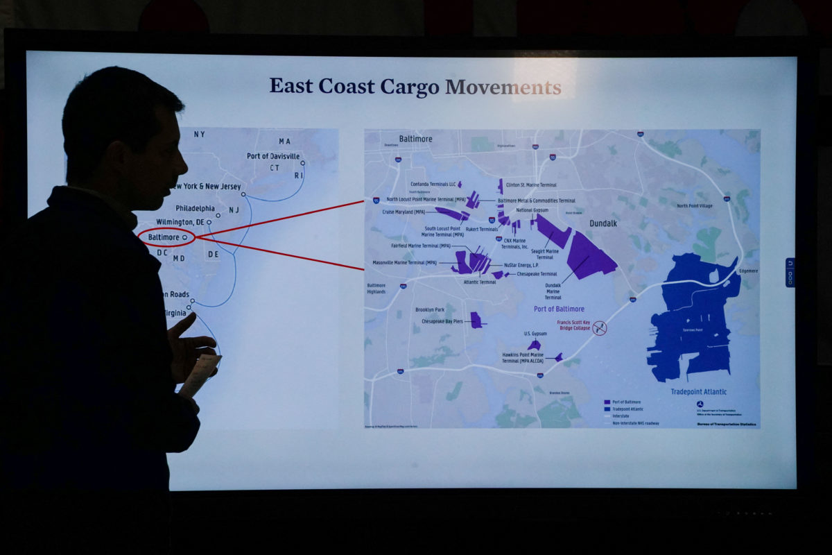 Διαβεβαίωσε ότι μέχρι τα τέλη Μαΐου θα ολοκληρωθούν τα έργα για την αποκατάσταση της πρόσβασης στο λιμάνι της Βαλτιμόρης, ένα από τα μεγαλύτερα των Ηνωμένων Πολιτειών. Στις αρχές της εβδομάδας άνοιξε ένας προσωρινός διάδρομος για να επιτρέψει την πρόσβαση σε σκάφη που συμμετέχουν στην επιχείρηση απομάκρυνσης των συντριμμιών, αλλά δεν είναι αρκετά μεγάλος ώστε να επιτρέψει τη διέλευση εμπορικών πλοίων.