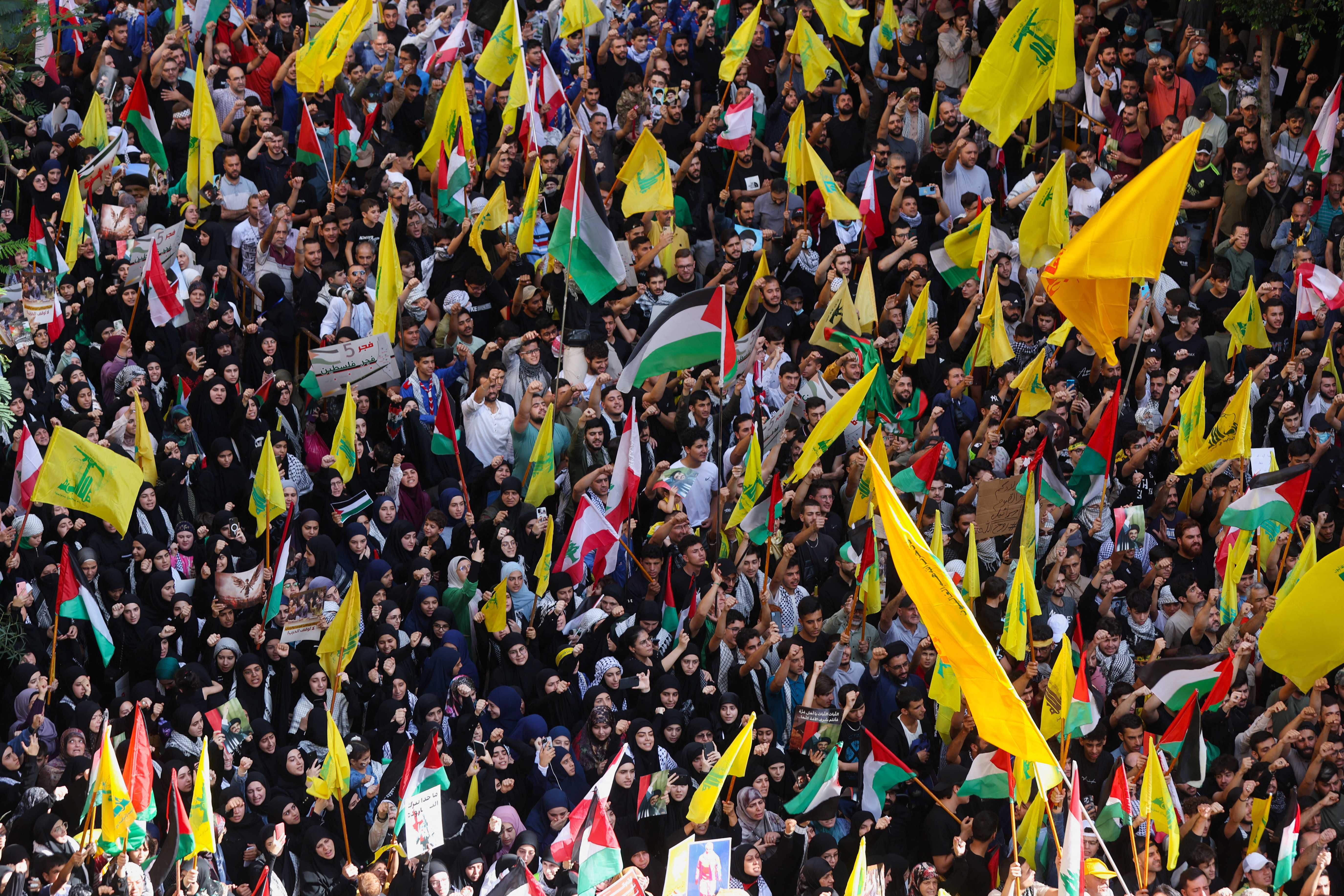 Ορισμένοι από τους διαδηλωτές κρατούσαν παλαιστινιακές σημαίες. Άλλοι εκτόξευαν πέτρες στις δυνάμεις ασφαλείας που απάντησαν με ρίψεις δακρυγόνων. Στα πλάνα που μεταδόθηκαν από την τηλεόραση φαίνονται φλόγες να υψώνονται σε ένα κτίριο κοντά στα οδοφράγματα. Στη νότια Βηρυτό οργανώθηκε επίσης μια διαδήλωση από τη Χεζμπολάχ.