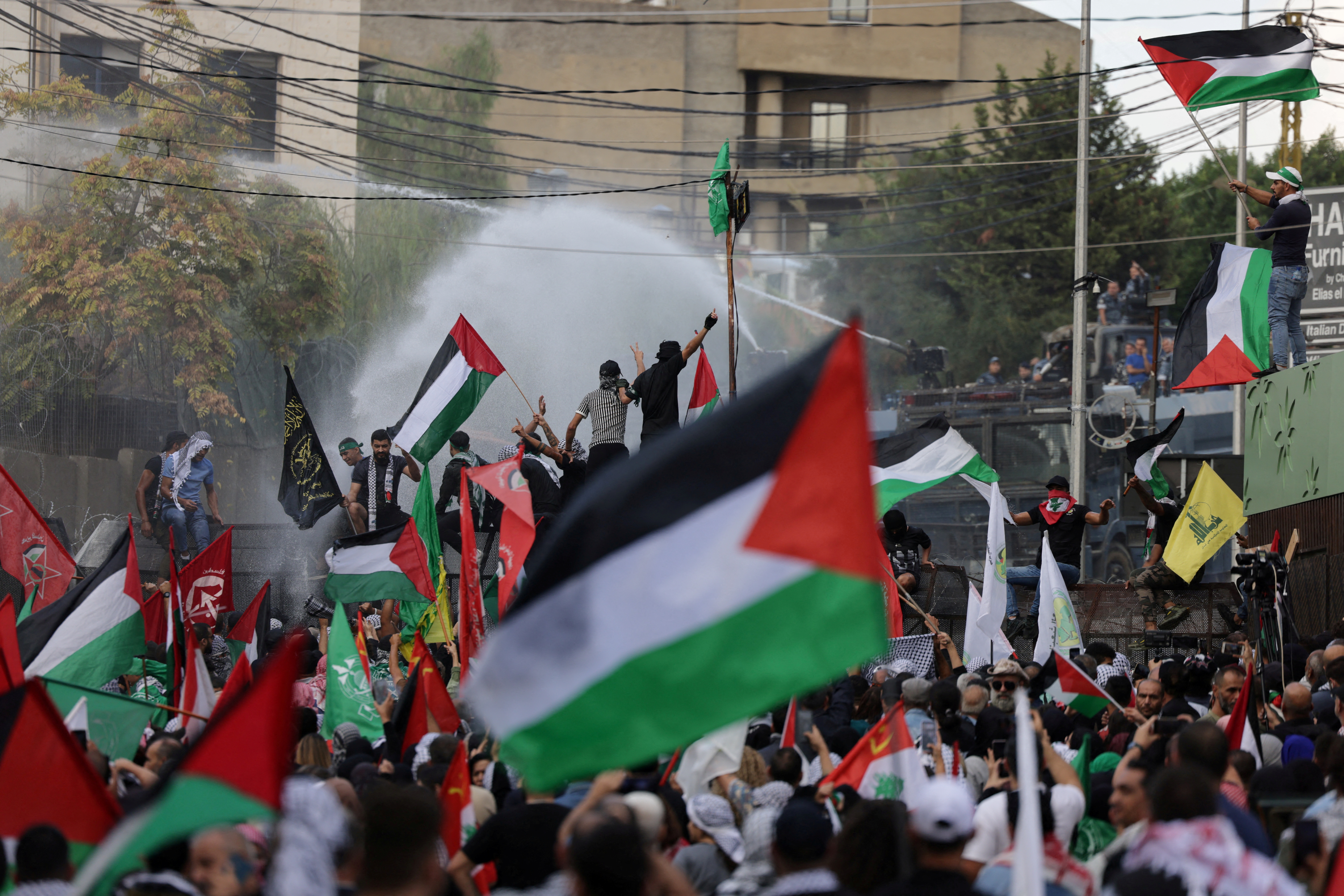 Με δακρυγόνα και νερό υπό πίεση επιχείρησαν οι δυνάμεις ασφαλείας του Λιβάνου να απωθήσουν χιλιάδες διαδηλωτές που είχαν συγκεντρωθεί κοντά στην αμερικανική πρεσβεία στη Βηρυτό, εκφράζοντας την οργή τους για την επίθεση του Ισραήλ, όπως λένε, σε ένα νοσοκομείο στη Γάζα όπου σκοτώθηκαν εκατοντάδες Παλαιστίνιοι.