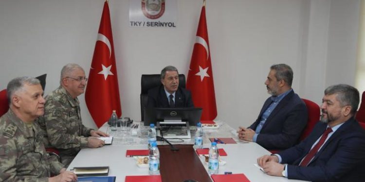 Συνάντηση υψηλού επιπέδου έλαβε χώρα σήμερα στο Χατάι, στα νότια σύνορα της Τουρκίας με την Συρία, στην οποία συμμετείχαν ο Υπουργός Άμυνας Χουλουσί Ακάρ και υψηλόβαθμα στελέχη της στρατιωτικής ηγεσίας και του τομέα πληροφοριών.