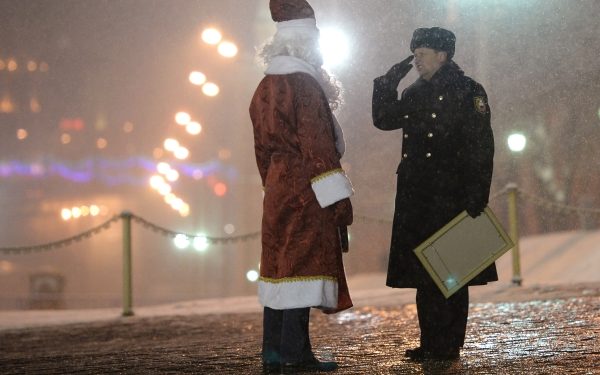 Ένας ένστολος Μοσχοβίτης »υποδέχεται» με στρατιωτικό χαιρετισμό, στο πλαίσιο ενός φωτογραφικού αφιερώματος του ρωσικού Πρακτορείου Ειδήσεων RIA-Novosti, τον Άγιο Βασίλη , στην περιοχή της Κόκκινης Πλατείας!