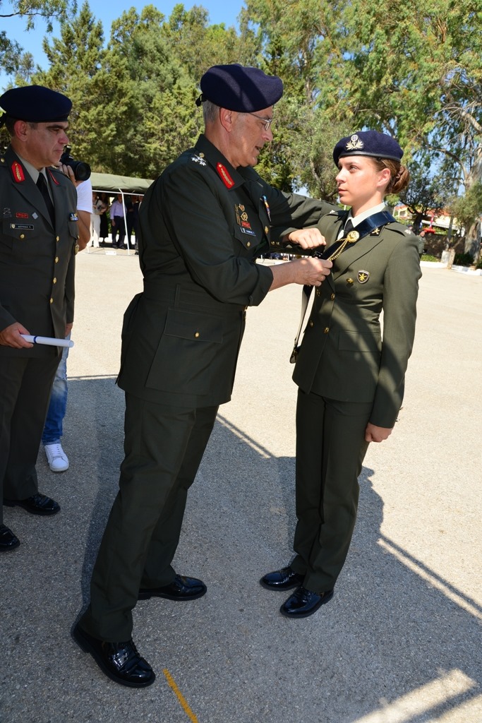 Ο Αρχηγός, επέδωσε στους Ανθυπολοχαγούς τα αποφοιτήρια και την παλάσκα του Πυροβολητή, ενώ βράβευσε τους πρωτεύσαντες επιδίδοντάς τους πλακέτα με το έμβλημα του Όπλου τους.