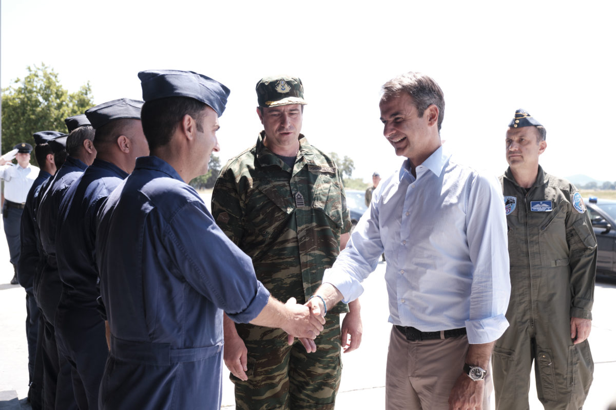 Ο Κυριάκος Μητσοτάκης επισκέφτηκε στην 111 Πτέρυγα Μάχης όπου και είδε τις εγκαταστάσεις και μίλησε με το προσωπικό στην Μονάδα όπου και υπηρέτησε την στρατιωτική του θητεία πριν από 27 χρόνια.