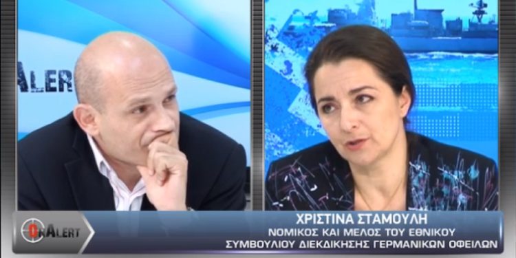 Η κυρία Χριστίνα Σταμούλη, νομικός και μέλος του Εθνικού Συμβουλίου Διεκδίκησης Γερμανικών Οφειλών, είναι στο στούντιο του Onalert.gr τωρα ζωντανα