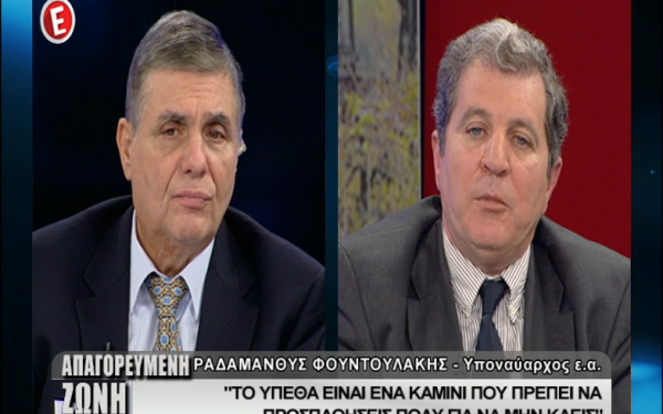 Τις προσπάθειες που έκαναν να τον δωροδοκήσουν όταν ήταν στην επιτροπή για τα υποβρύχια, κατήγγειλε ο Ρ. Φουντουλάκης, υποναύαρχος ε.α. μιλώντας στον Γιώργο Τράγκα και την εκπομπή Απαγορευμένη Ζώνη. Ο Γιώργος Τράγκας έδειξε το απόσπασμα της συνέντευξης του κ. Φουντουλάκη στο Onalert, όπου αποκαλύπτει πως τον πλησίασαν για να τον “λαδώσουν” . Δείτε το απόσπασμα και αμέσως μετά όλα όσα είπε στον Γιώργο Τράγκα ο κ.Φουντουλάκης.