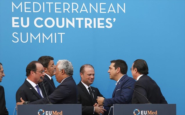 Δίπλα στον οικοδεσπότη Τσίπρα κάθισαν ο Ολάντ, ο Ρέντσι και οι ηγέτες της Πορτογαλίας, της Κύπρου και της Μάλτας. Στην Αθήνα ανακάλυψαν ένα νέο αίσθημα κοινής αντίληψης. Ο Ρέντσι και ο Τσίπρας αγκαλιάστηκαν, ο Ολαντ έλαμπε. Ενώ μέχρι τώρα ο Γάλλος πρόεδρος προτιμούσε να κρατά αποστάσεις από τους μεσογειακούς γείτονές του, τώρα βλέπει τον εαυτό του ως τον «αρχαιότερο ηγέτη» της νέας πολιτικής ομάδας. Αν και η Πορτογαλία δεν είναι κυριολεκτικά μεσογειακή χώρα νοιώθει άνετα σε αυτόν τον κύκλο πολιτικών.
