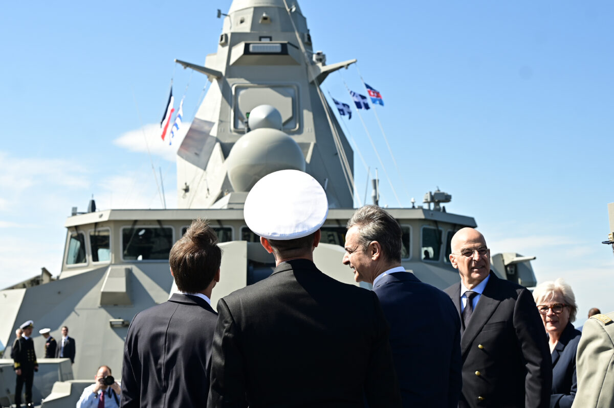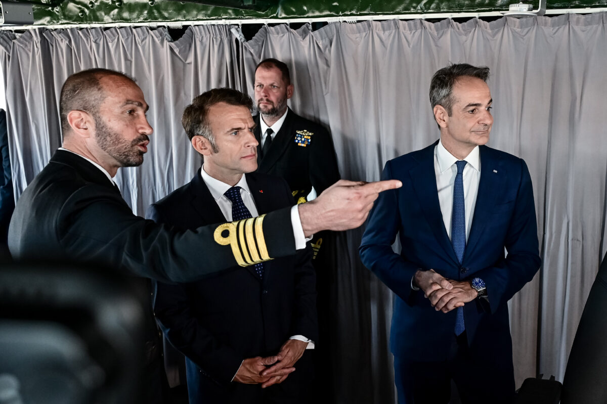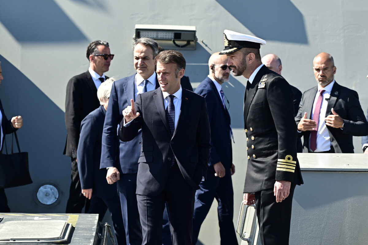 Επίσκεψη του Πρωθυπουργού Κυριάκου Μητσοτάκη και του Προέδρου της Γαλλίας Emmanuel Macron στην φρεγάτα «ΚΙΜΩΝ» / ΜΙΧΑΛΗΣ ΚΑΡΑΓΙΑΝΝΗΣ/EUROKINISSI