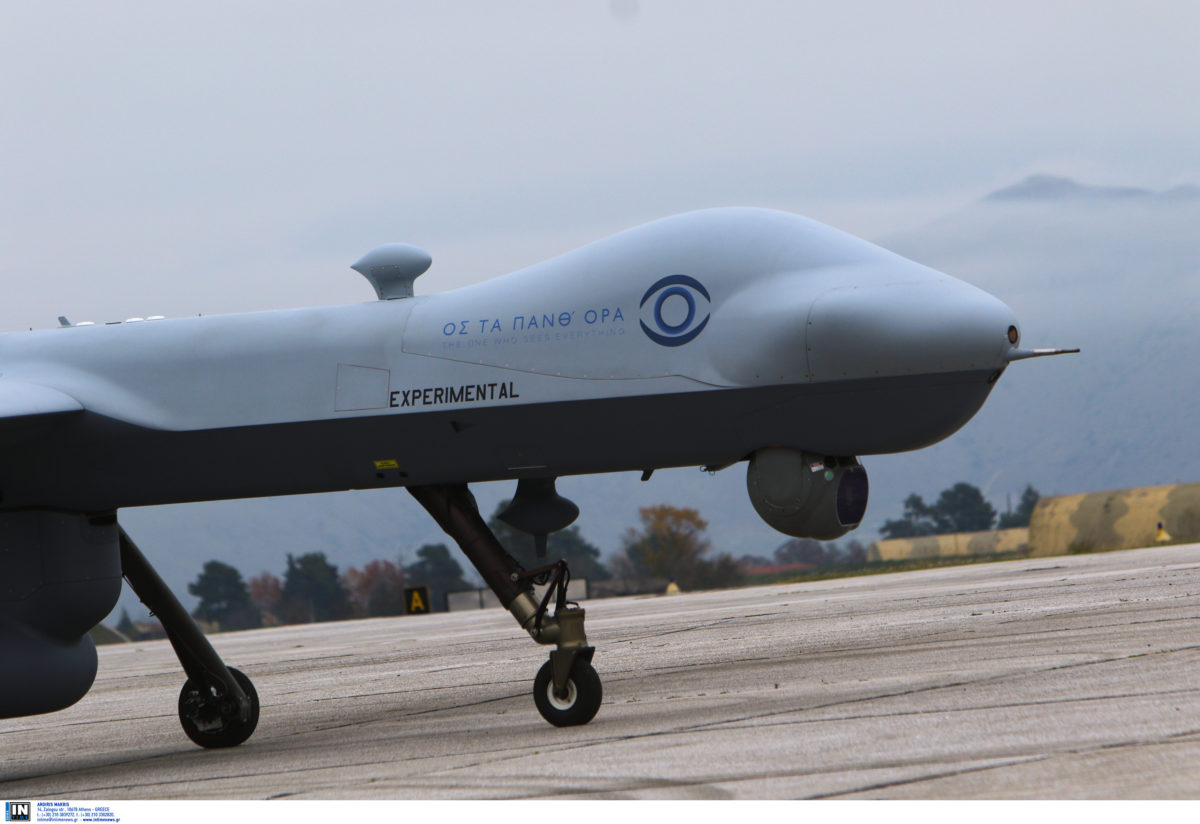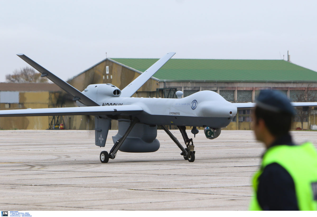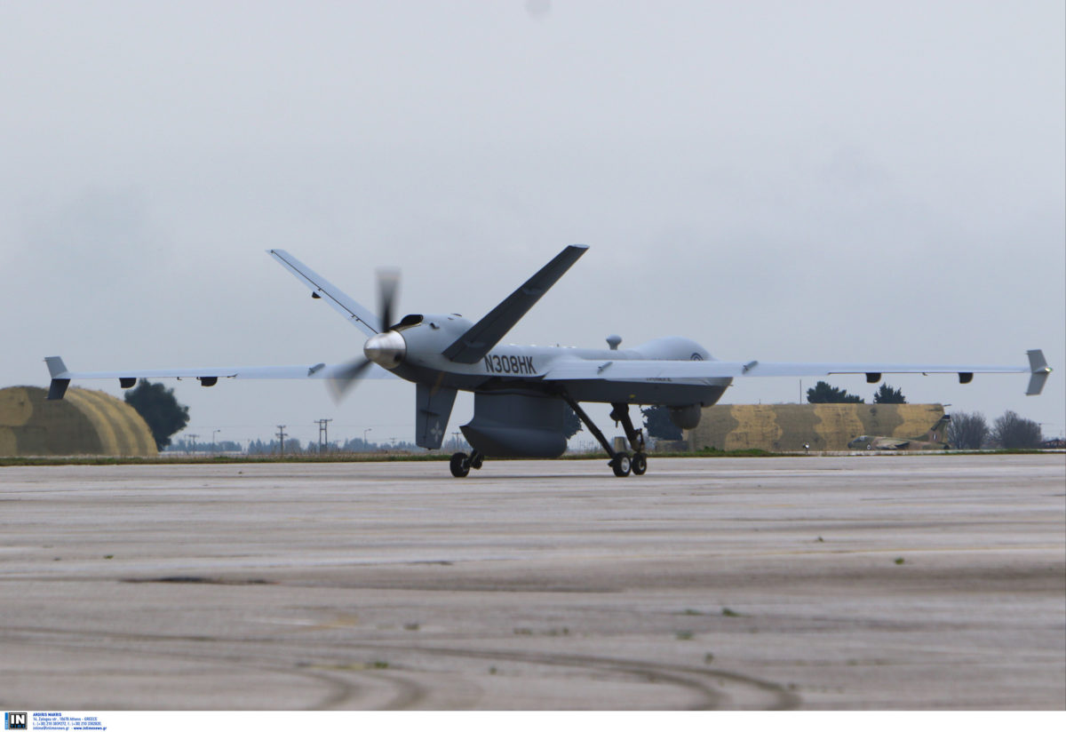 Στην 110 Πτέρυγα Μάχης της Λάρισας παρουσιάστηκε σήμερα το αμερικανικό drone MQ-9 Guardian, από την εταιρεία General Atomics Aeronautical Systems.