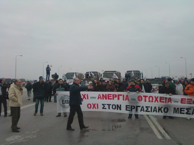 Στις 2 πλευρές της Εθνικής οδού Αθηνών – Θεσσαλονίκης στο ύψος των διοδίων των Μαλγάρων, έχουν παρατάξει τα οχήματα τους οι εργαζόμενοι στην Ελληνική Βιομηχανία Όπλων.