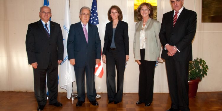 Μαζί τη η κα Donna Collins, Διευθύντρια Διοίκησης Προγραμμάτων και ο κ. Ντένης Πλέσσας, Αντιπρόεδρος Επιχειρηματικών Πρωτοβουλιών για την Ευρώπη, Μέση Ανατολή & Αφρική της Lockheed Martin Aeronautics/International.