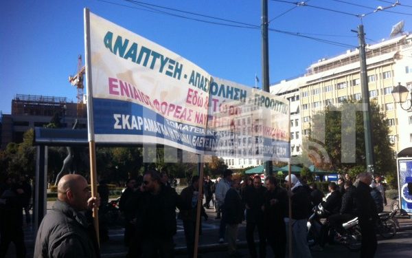 Στους δρόμους για να διαμαρτυρηθούν κατέβηκαν οι εργαζόμενοι στα ναυπηγεία Σκαραμαγκά, Ελευσίνας και Νεωρίου Σύρου.