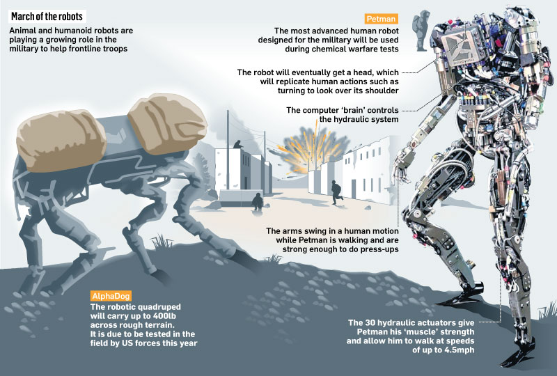 Βέβαια μέχρι να δούμε την πρώτη μονάδα ρομπότ στο πεδίο της μάχης,θα περάσουν ακόμη αρκετά χρόνια όπως λένε οι κατασκευαστές του Petman. Μπήκαμε όμως στο δρόμο χωρίς επιστροφή!