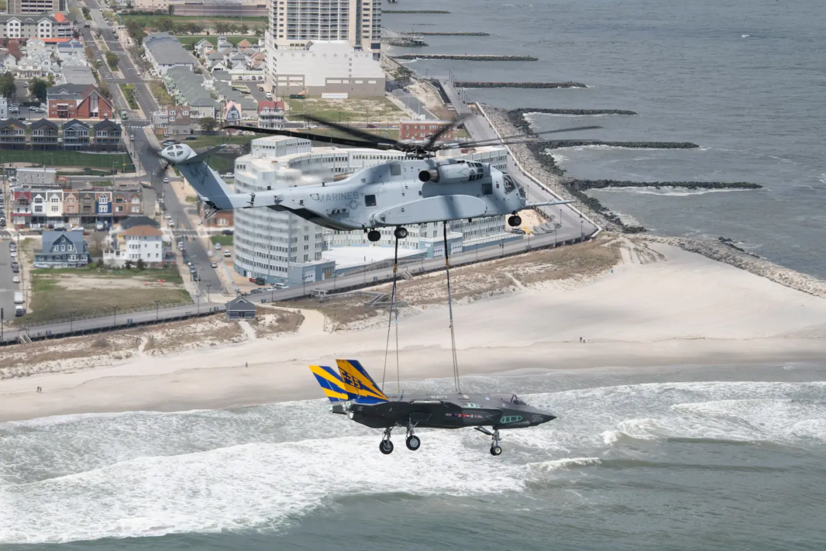 Ειδικότερα, το Πολεμικό Ναυτικό των ΗΠΑ δημοσίευσε πλάνα από ένα ελικόπτερο τύπου CH-53K του USMC, που μετέφερε ένα stealth μαχητικό αεροσκάφος πολλαπλών ρόλων πέμπτης γενιάς τύπου F-35C του U.S Navy, από την αεροπορική βάση του Patuxent River στο Κέντρο Επιχειρήσεων Αεροπορίας Ναυτικού του Lakehurst.