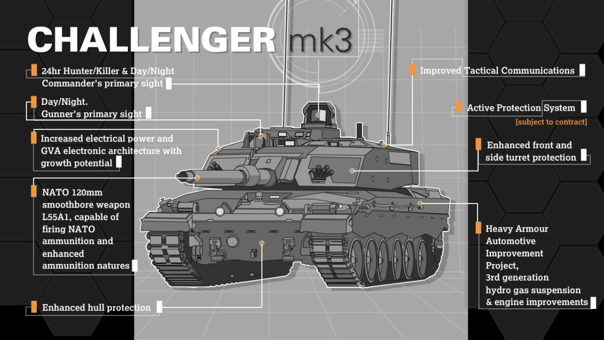 Υπενθυμίζεται ότι έχει υπογραφεί σύμβαση αξίας 800 εκατομμυρίων λιρών από τον Μάιο του 2021 για την κατασκευή και ανάπτυξη του τεθωρακισμένου άρματος μάχης νέας γενιάς Challenger 3, ενώ συνολικά 148 άρματα μάχης τύπου Challenger 2 θα αναβαθμιστούν έως το 2027, παρέχοντας βελτιωμένη ικανότητα επιβίωσης, θνησιμότητα, ικανότητα δικτύου, επιτήρηση και δυνατότητες απόκτησης στόχων.