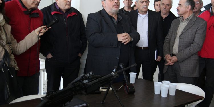 «Ζητάμε τη συλλογική προσπάθεια όλων, χωρίς διαχωρισμούς. Στην πράξη με πατριωτική αντίληψη να αντιμετωπίσουμε τα προβλήματα. Να βάλουμε μπροστά να κινηθεί το εργοστάσιο αυτό. Να κινηθούν και τα άλλα εργοστάσια των αμυντικών βιομηχανιών. Να ξεκινήσει η παραγωγή  που την έχουν ανάγκη οι Ελληνικές Ενοπλες Δυνάμεις αλλά και οι ξένες αγορές αμυντικού υλικού. Να σταματήσει η προσπάθεια κάποιων τυχοδιωκτών που θέλουν να μοιράσουν το εργοστάσιο και τα μηχανήματα και να πάρουν αυτό τον πλούτο για ένα κομμάτι ψωμί. Να βάλουμε μπροστά για τη σωτηρία της χώρας, τη σωτηρία των τοπικών κοινωνιών και του συγκεκριμένου εργοστασίου».