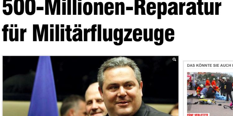 Η γερμανική εφημερίδα Bild γνωστή για …την εγκυρότητά της ενοχλήθηκε σφόδρα επειδή η Ελλάδα “την ίδια ώρα που προσπαθεί να αποφύγει την χρεοκοπία δίνει 500 εκατομμύρια ευρώ για να επισκευάσει πολεμικά αεροπλάνα”. Η ενόχληση είναι βέβαιο ότι έχει να κάνει με το γεγονός ότι τα αεροπλάνα δεν είναι γερμανικά! Διαφορετικά είναι βέβαιο ότι η “έγκυρη” εφημερίδα της Γερμανίας δεν θα είχε κανένα πρόβλημα.