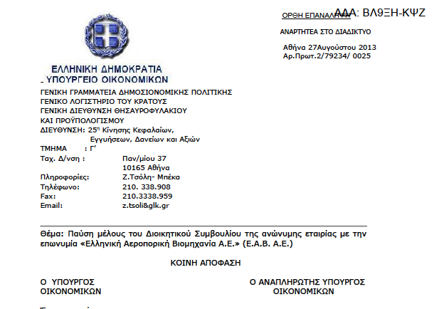 Μετά από σειρά δημοσιευμάτων και αφού επί της ουσίας η ΕΑΒ, μια εταιρεία εξαιρετικά κρίσιμη για την Πολεμική Αεροπορία είχε μείνει επί μήνες “ακέφαλη” εδέησαν οι “οικονομικοί υπουργοί” να προχωρήσουν στην παύση του στελέχους της ετιαρείας που είχε πλαστούς τίτλους σπουδών.