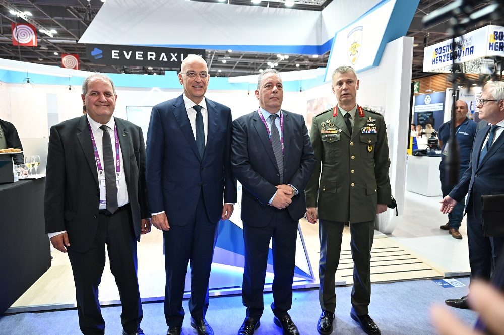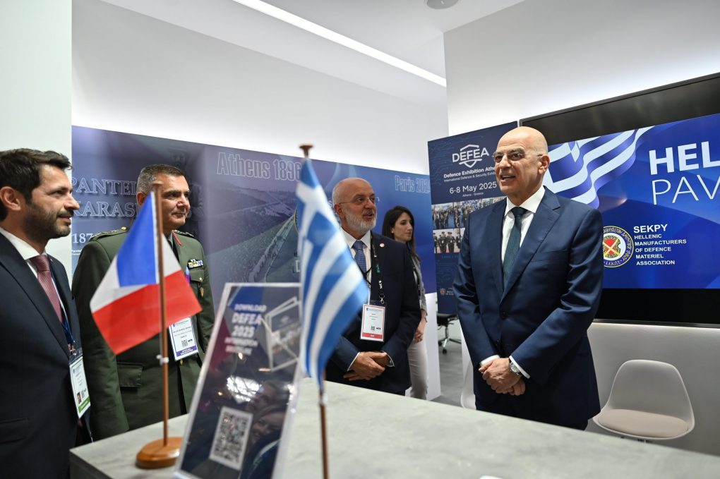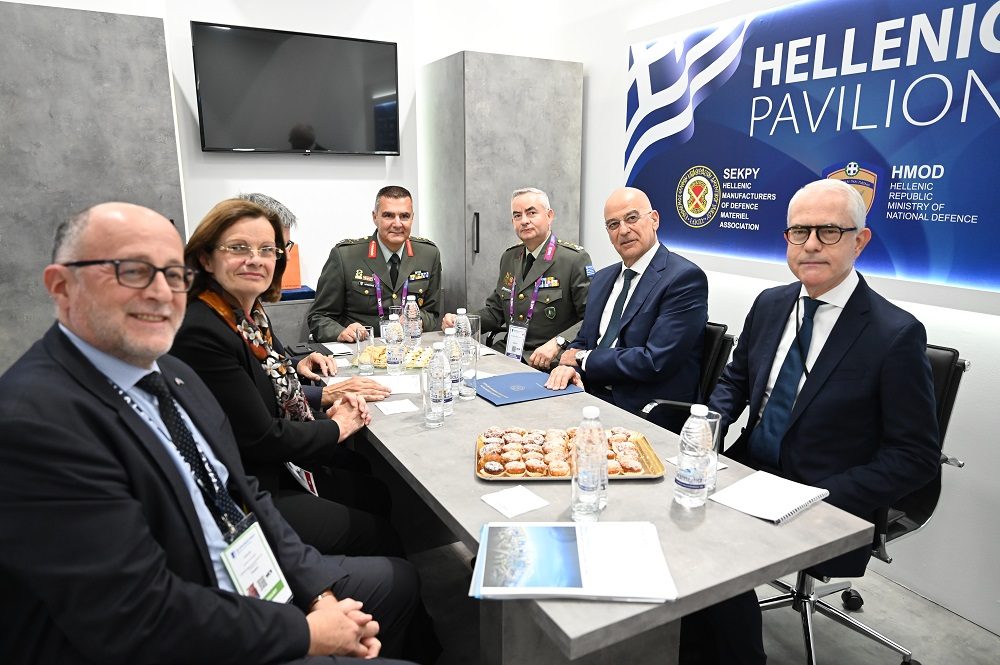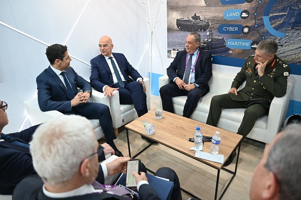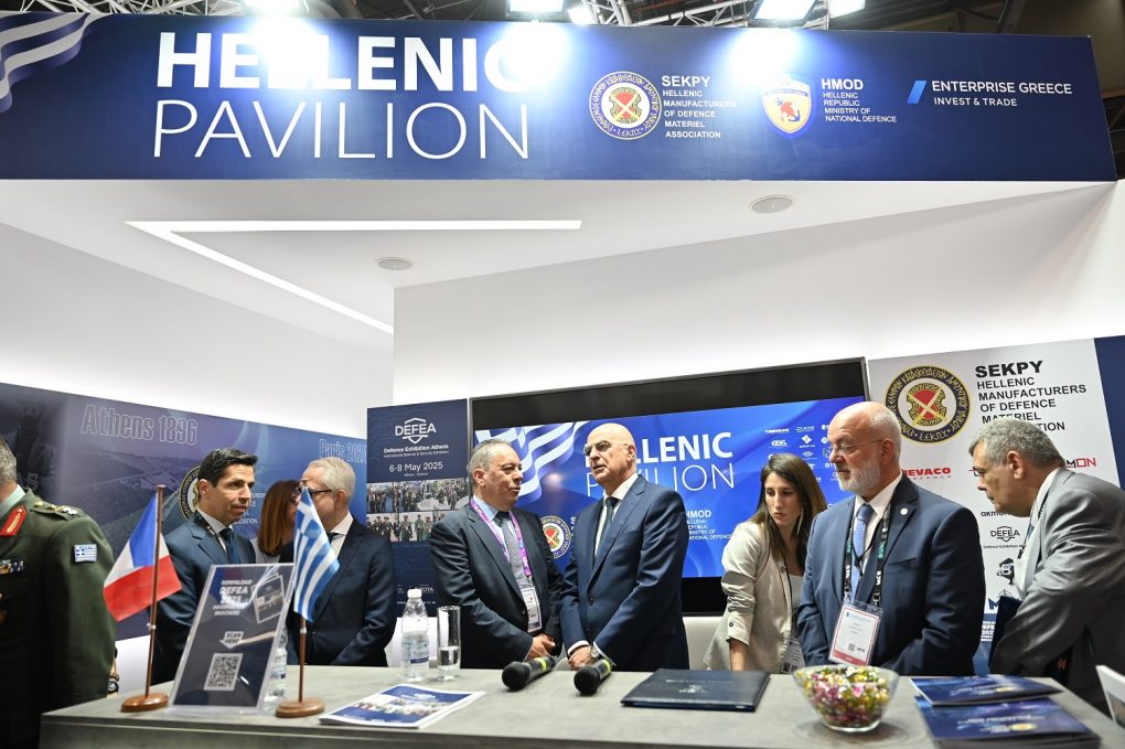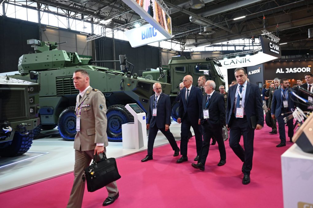 Νωρίτερα ο κ. Δένδιας, συνοδευόμενος από τον Υπουργό Άμυνας της Κυπριακής Δημοκρατίας Βασίλη Πάλμα, εγκαινίασε το ελληνικό περίπτερο αμυντικών βιομηχανιών, το οποίο τελεί υπό την αιγίδα του Υπουργείου Εθνικής Άμυνας. Στο ελληνικό περίπτερο, τον Υπουργό Εθνικής Άμυνας υποδέχθηκε ο Πρόεδρος του Συνδέσμου Ελλήνων Κατασκευαστών Αμυντικού Υλικού (ΣΕΚΠΥ) Αναστάσιος Ροζολής.