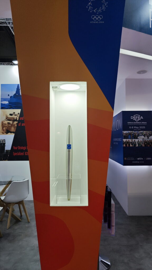 Επίσης, στον χώρο του ΣΕΚΠΥ θα υπάρχει ένα ξεχωριστό έκθεμα που δεν συνηθίζεται σε στρατιωτικές εκθέσεις αλλά φέρει ιδιαίτερα σημαντικούς συμβολισμούς. Θα εκτίθεται δάδα από τους Ολυμπιακούς Αγώνες της Αθήνας το 2004, καθώς φέτος οι Ολυμπιακοί Αγώνες λαμβάνουν χώρα στο Παρίσι όπου φιλοξενείται η έκθεση.