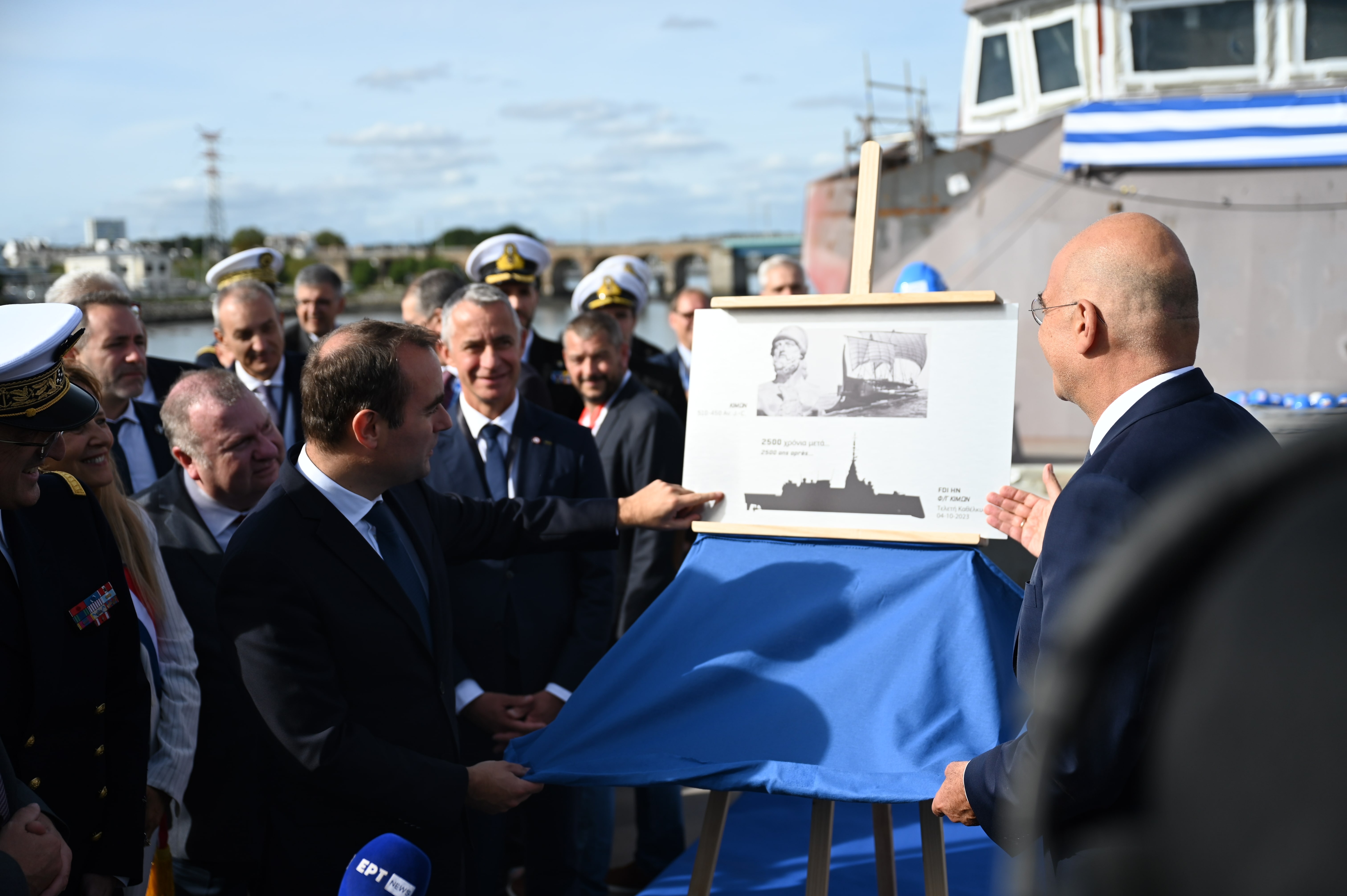 Παρουσία του υπουργού Εθνικής Αμυνας Νίκου Δένδια και του Γάλλου ομόλογου του Σεμπαστιάν Λεκορνύ πραγματοποιήθηκε σήμερα στα ναυπηγεία της Naval Group, στο Λοριάν την Γαλλίας, η τελετή για την καθέλκυση της ελληνικής φρεγάτας τύπου FDI «Κίμων».