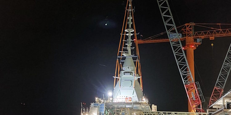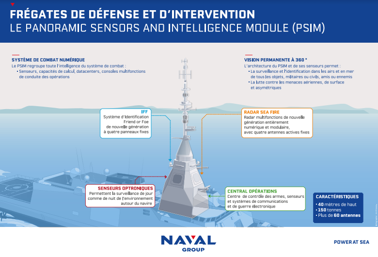 Η ανεξάρτητη μονάδα (module) PSIM (The Panoramic Sensors and Intelligence Module) που περιλαμβάνει τους αισθητήρες και τα κέντρα επιχειρήσεων τοποθετήθηκε, χθες, στη φρεγάτα FDI HN1 «Κίμων» του Πολεμικού Ναυτικού, στο ναυπηγείο της Naval στην πόλη Λοριάν της Γαλλίας.