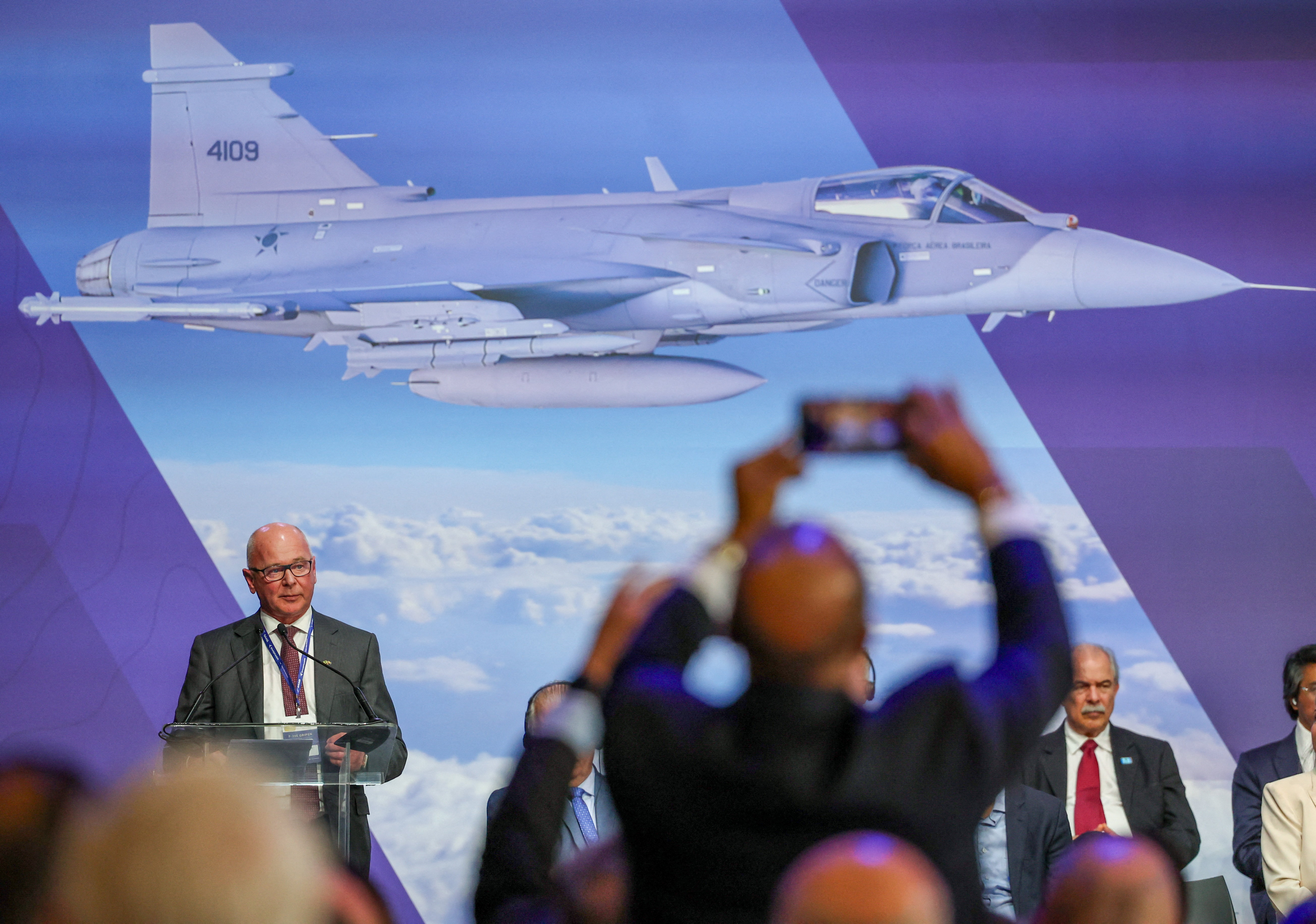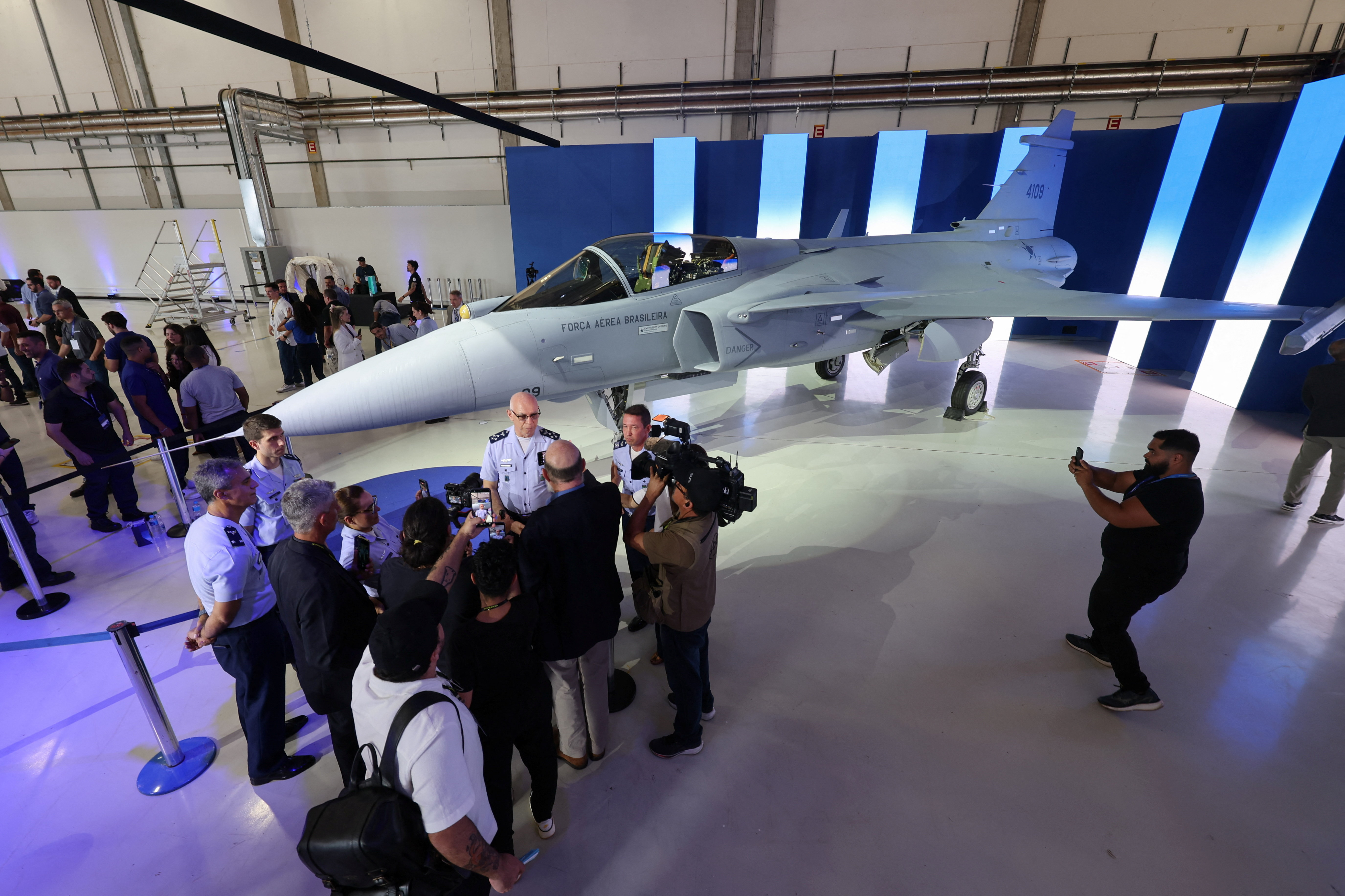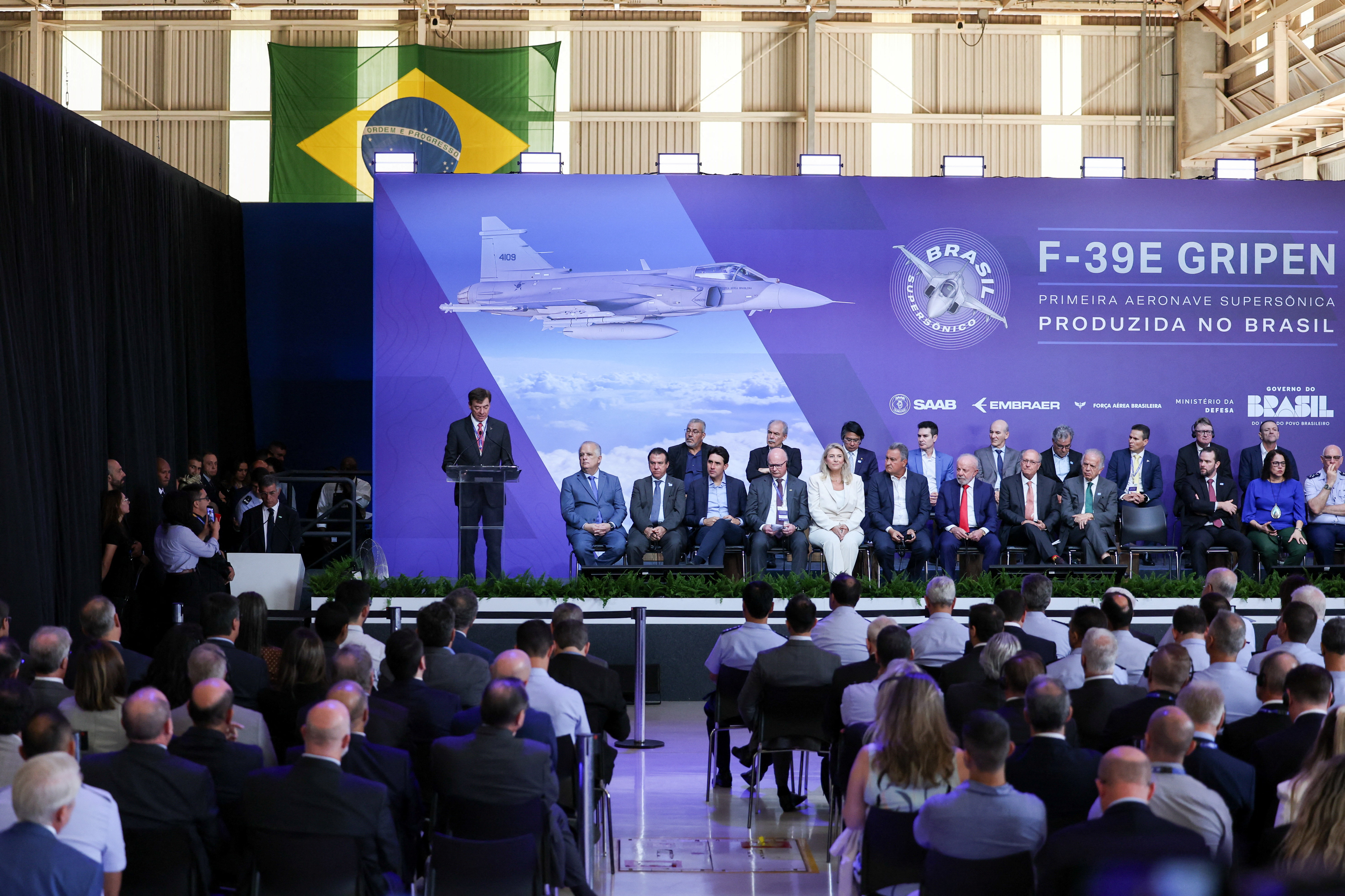 Η Βραζιλία παρουσίασε επίσημα το πρώτο εγχώριας παραγωγής μαχητικό αεροσκάφος F-39E Gripen κατά τη διάρκεια τελετής στις εγκαταστάσεις της Embraer στο Σάο Πάολο.