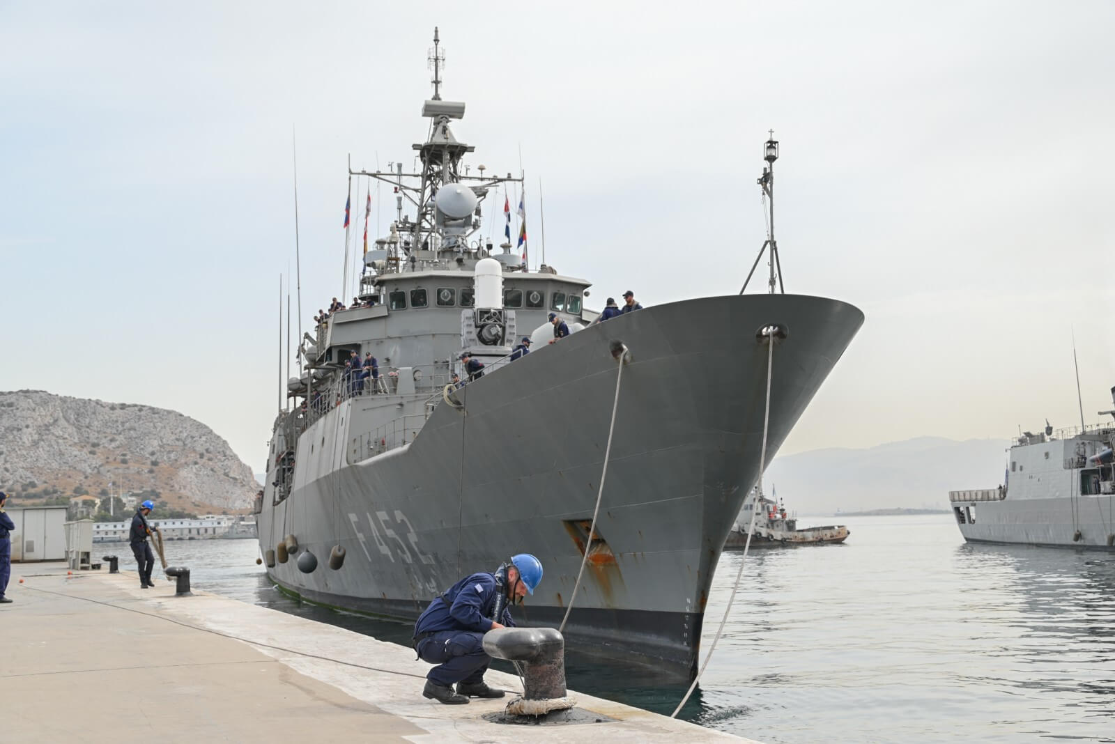 Η φρεγάτα «ΥΔΡΑ» κατέπλευσε σήμερα το πρωί στο ναύσταθμο Σαλαμίνας έχοντας ολοκληρώσει με απόλυτη επιτυχία την αποστολή της στην ευρωπαϊκή επιχείρηση «ΑΣΠΙΔΕΣ».