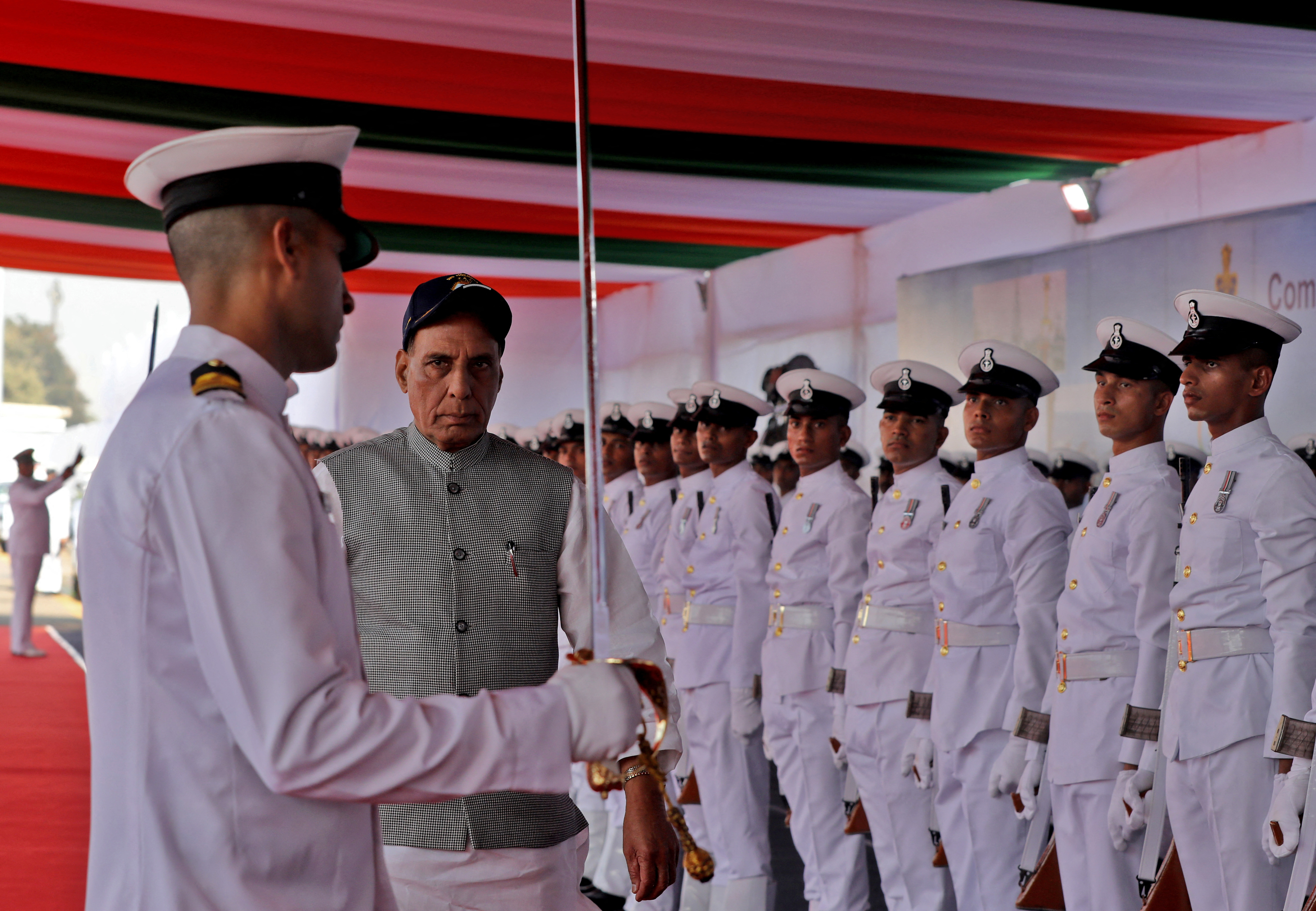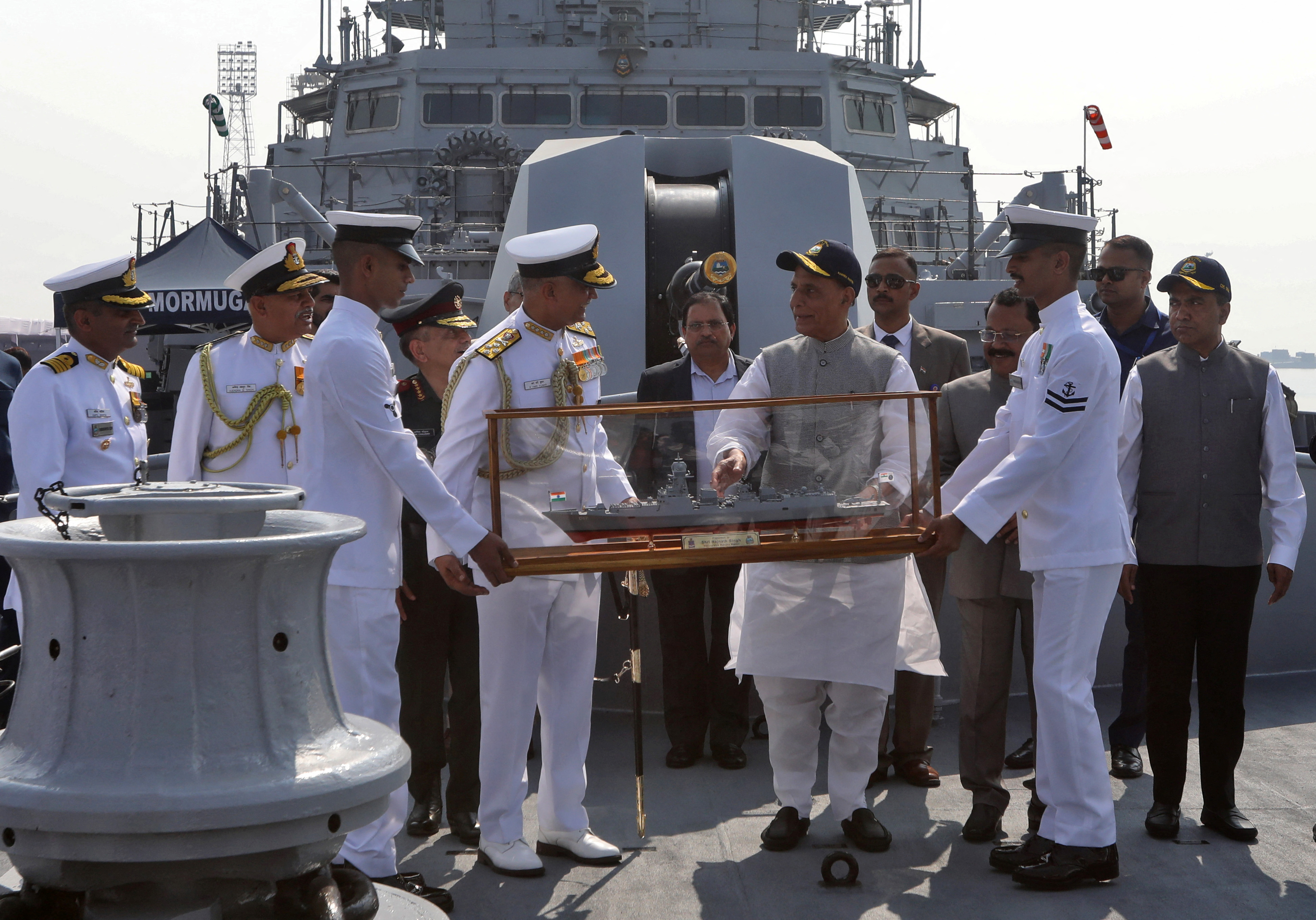 Ο υπουργός Άμυνας Rajnath Singh και ο αρχηγός του Πολεμικού Ναυτικού, ναύαρχος Hari Kumart παρευρέθηκαν στην εντυπωσιακή τελετή ανάθεσης που πραγματοποιήθηκε στη Βομβάη.