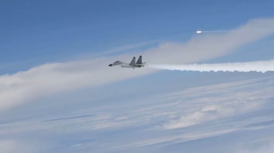Chinese jets are seen shooting flares, flashing weapons, & flying dangerously close to US planes.