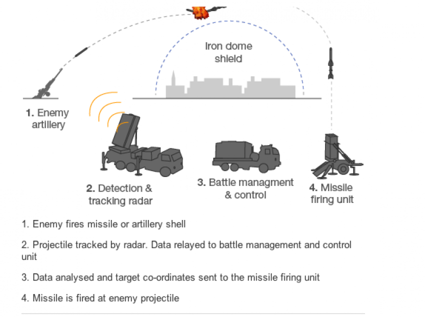 Το Iron Dome είναι ένα κινητό σύστημα αεράμυνας που αναπτύχθηκε από την Rafael Advanced Defense Systems, σχεδιασμένο να παρακολουθεί ρουκέτες μικρής εμβέλειας και βλήματα πυροβολικού.